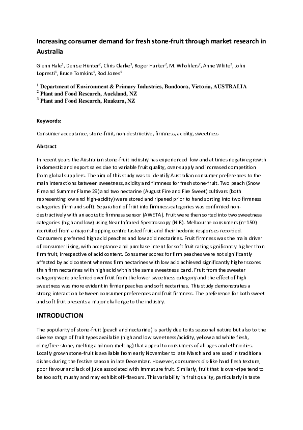 Pdf Increasing Consumer Demand For Fresh Stone Fruit Through Market Research In Australia Glenn Hale Academia Edu